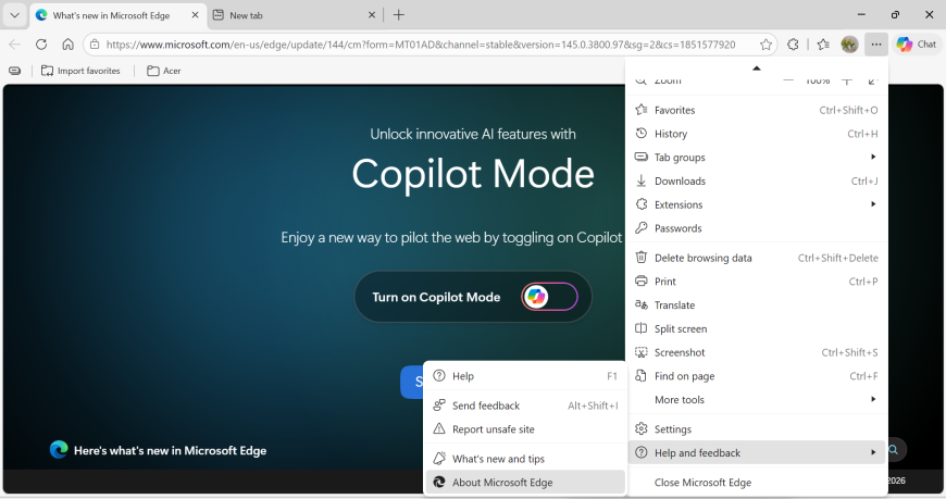 2. 选择“Help”(帮助),选择“About Google Chrome” / “About Microsoft Edge”