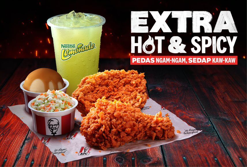 Extra Hot & Spicy搭配了全新的秘密配方,保证比Classic口味更加辣和更加香脆!KFC以重新调制的腌肉酱汁来腌制新鲜的鸡肉,再包裹上两层全新混合秘制香料配方,不仅会让鸡肉的外层吃起来更加香脆,同时也保留了鸡肉本身的鲜嫩多汁,让整体口感升华的一个level!
