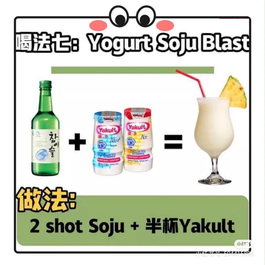 第七种小编私心非常推荐!Yakult的甜味和Soju的“辣”味结合,喝起来真的非常顺畅哦!